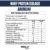Sabor Morango: Proteína isolada do soro de leite, aromatizante idêntico ao natural, edulcorante: stevia (glicosídeos de esteviol), espessante: goma xantana, acidulante: ácido cítrico, corante artificial vermelho ponceau.