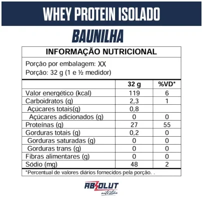 Sabor Baunilha: Proteína isolada do soro de leite, aromatizante idêntico ao natural, edulcorante: