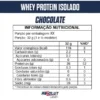 Sabor chocolate: Proteína isolada do soro de leite, cacau em pó, aromatizante idêntico ao natural, edulcorante: stevia (glicosídeos de esteviol), espessante: goma xantana.