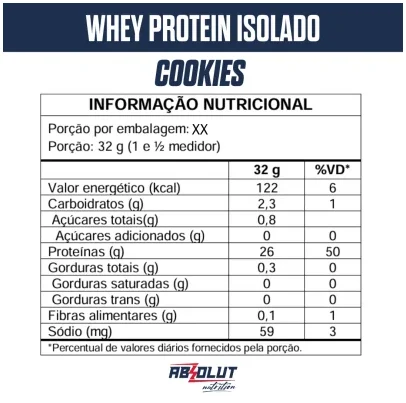Sabor Cookies: Proteína isolada do soro de leite, cacau em pó, aromatizante idêntico ao natural, edulcorante: stevia (glicosídeos de esteviol), espessante: goma xantana.
